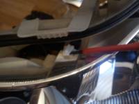 Um diese auszuhaken, drehen wir den Scheinwerfer um und öffnen auch hier die Haltenase mit einem kleinen Schraubenzieher.