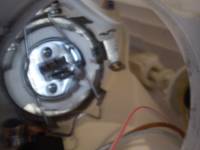Öffnen wir nun beide Haltenasen mit einem kleinen Schraubenzieher, können wir den Reflektor frei bewegen.