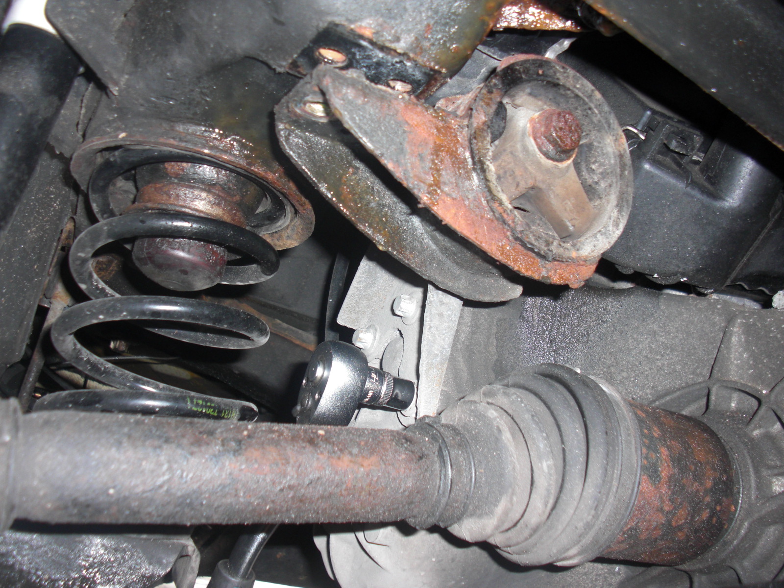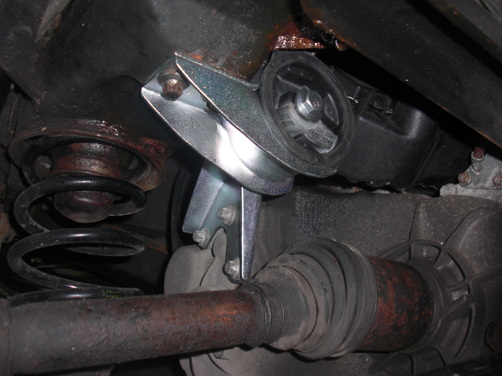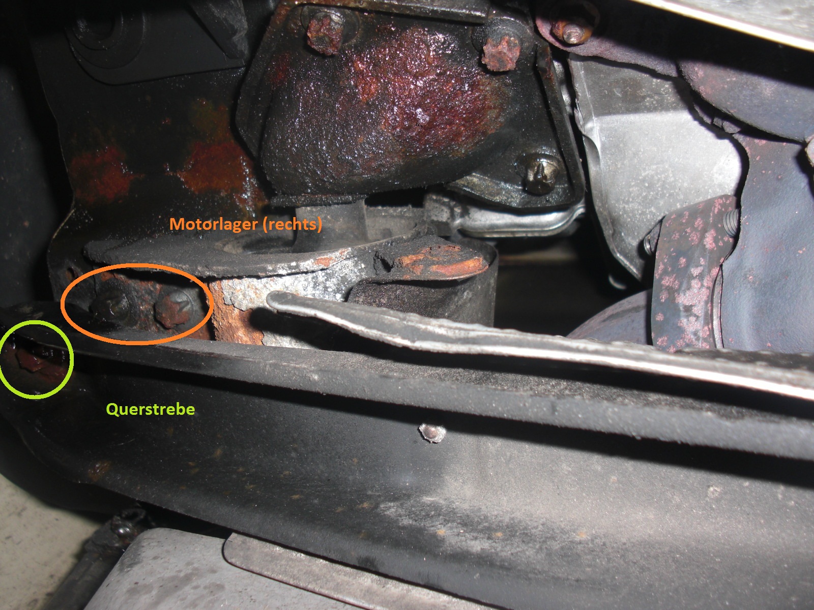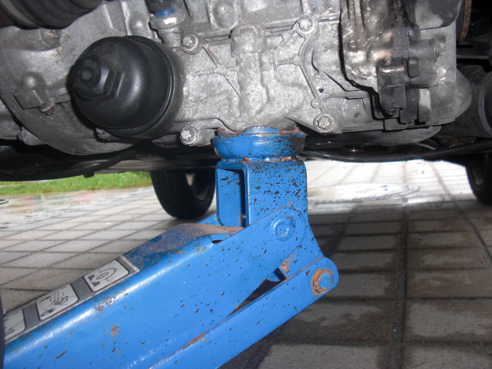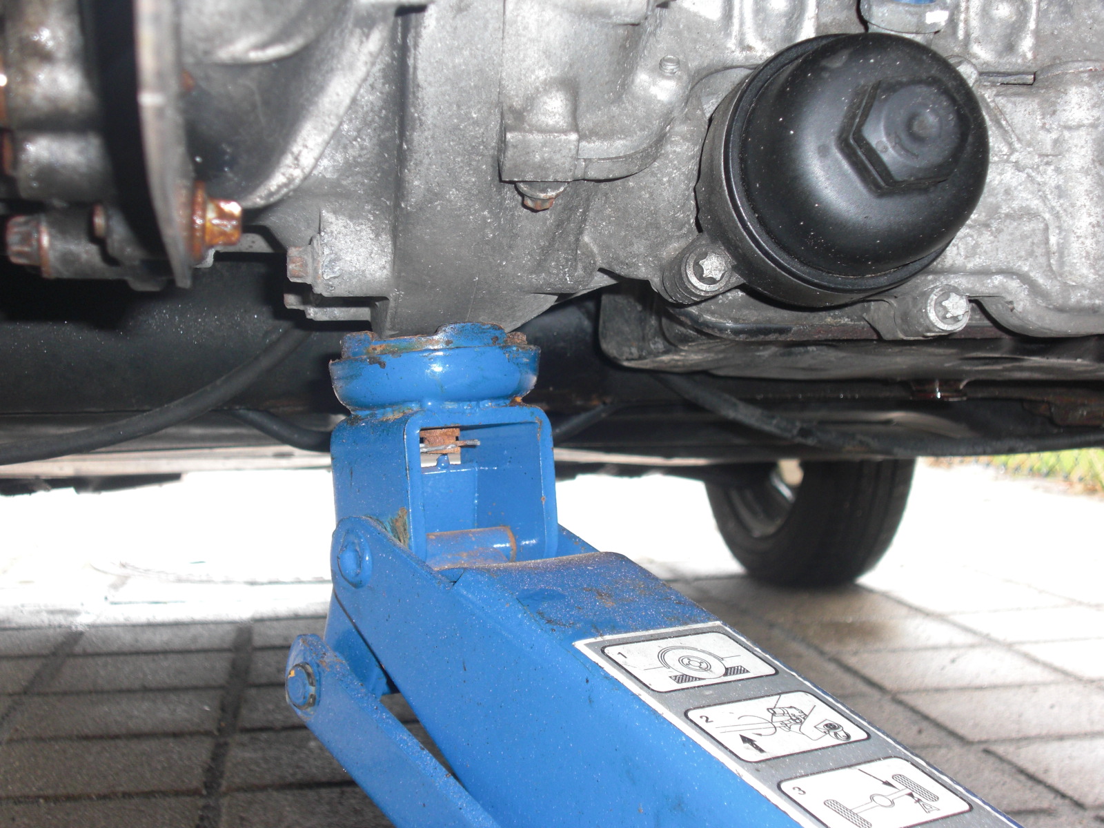 Wagenheber umsetzen! In der anderen Position kommt der Motor beim lösen des rechten Lagers (Beifahrerseite) runter gesackt. Nicht schlimm, aber Adrenalinkick garantiert.