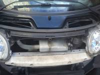 Um den Zugang zu vereinfachen, emfiehlt es sich, die Querstrebe über den Scheinwerfern auszubauen. Diese ist mit einer Schraube in der Mitte gesichert.