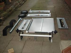 Der ABS-Deckel wird wieder auf den Anhänger drauf gesetzt, und die Montage der Seitenteile kann beginnen.
